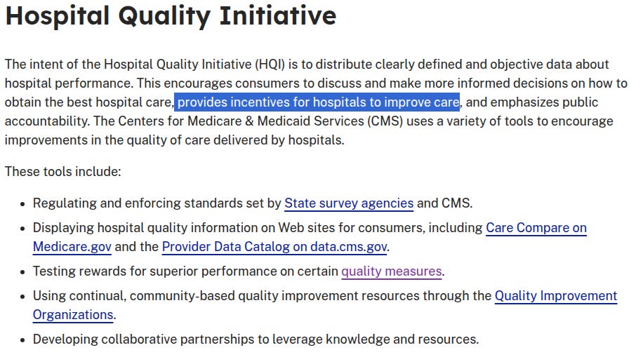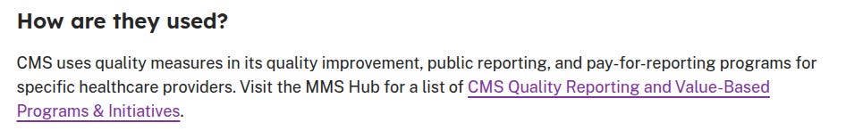 On page 5 of the CMS announcement, it talks about value-based purchasing programs and payment being tied to performance. The quality measures are the data points that determine how well a provider or hospital will be paid under the Value-Based Purchasing program. Medical records are tied to data mining programs in order to report quality measures to various public health databases. Essentially, it is a behavior modification program. During the pandemic, the CARES Act was passed which awarded doctors and hospitals bonuses for COVID diagnosis, ventilation and administering remdesivir. The Value-Based Purchasing Program achieves the same end result. Good behavior is rewarded with bonus payments while bad behavior is punished by with-holding payments.