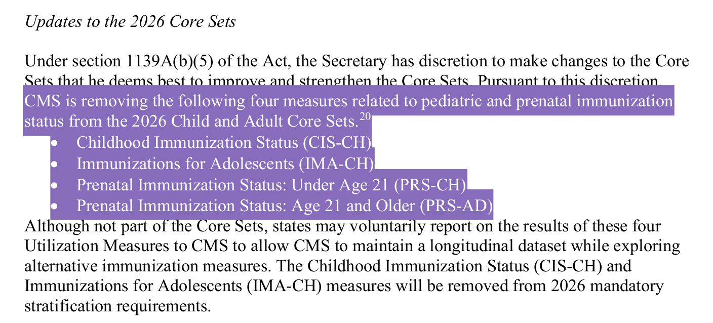 The Secretary of Health and Human Services, who is currently RFK Jr shall publish recommended changes to the core measures. Therefore, It is not news the policy was updated. However, if the former HHS Secretary Alex Azar were making these decisions, the result might look a lot different. I know there’s a lot of naysayers who think this is going to be all bad news. I do see some positive trends coming out of this but it’s not all good either.