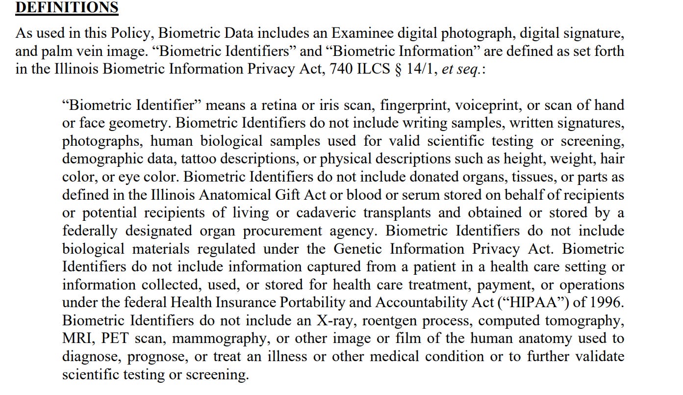 Biometrics can also be collected on patients using medical records. If you haven’t heard me say it before, please hear me now. When you get asked to have your picture taken for your medical record, I suggest you decline the photo op. That picture can be used to collect biomteric information which can be used to connect your identity to social media posts, or any number of other things. Don’t forget many hospitals have a Palantir program called Foundry built-in to the system. In addition, healthcare institutions must report data to the Palantir program HHS Protect. (it’s called something else now but it’s still there).