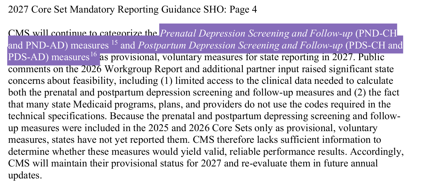 There is a provisional update to monitor and track pre and post-partum depression. Women suffering from pre and postpartum depression are frequently gas lit and the condition is under diagnosed.
