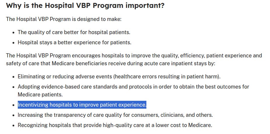 Being one to call a spade, a spade, I wrote in the HCAHPS program is a PR campaign tool for the healthcare industry. You can find it in chapter 6 of the COVID Code, below is a free excerpt. As you will see, the healthcare industry has collectively boarded the PR campaign train. All to manipulate patient perception in return for money. Not unlike operation Mockingbird.